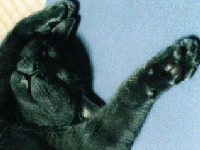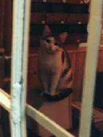 旅先の飼い猫代表、今年の春に泊まったパリの安ホテル「メディシス」の猫です。名前 は忘れてしまいましたが、いつもフロントにいます。部屋に遊びに(?)来たりもしま した。シャワールームに明かりも点かないような宿でしたが、猫に免じて許しましょう 、て感じ(ま、激安ですから)。 |