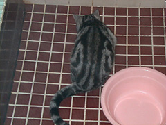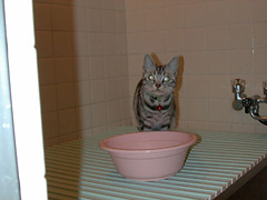 小さいころからお風呂が好き! お尻が濡れるのも平気よ。 ちょっと床もなめておこうかな |